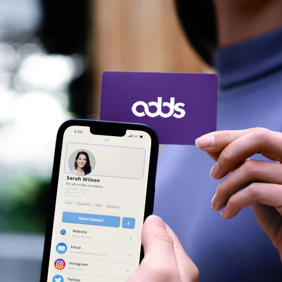 Cree una experiencia atractiva y memorable para las personas que conoce mientras guarda su información de contacto directamente en su teléfono con la tarjeta de presentación inteligente ODDS. Pídales que lo recuerden mucho después de que termine la reunión.